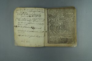 Der volkstümliche Kalender enthält einen Kupferstich als Deckblatt, Seiten für jeden Monat, Zeiten für die eintreffende und abgehende Post bezogen auf Bruchsal, bemerkenswerte Daten seit Christi Geburt, die Mondphasen, Sonnen- Aufgänge bzw. Untergänge, Verzeichnis des Domkapitels, Verhaltensregeln bei Viehseuchen, Astronomische und astrologische Praktika, Flüssigkeitsmaßtabellen (Fuder in Ohm) für Wein, Zinstabellen, 1x1, Verzeichnis der Messen und Jahrmärkte , Leerseiten für persönliche Notizen. 32 Blätter gedruckt bei Jakob Bevern, Hof- und Kanzleidruckerei in Bruchsal. Das Deckblatt ist in zwei unterschiedlich große Holzstiche aufgeteilt. Der untere und kleinere zeigt eine Ansicht der Stadt Bruchsal. Darüber steht auf einem langen, schmalen Banner „Hochfürstlich Speyerische Residenz-Stadt Bruchsal“. Im Zentrum des größeren Stichs sind sechs Personen, die in einem Halbkreis stehen. Aufgrund der Attribute in ihren Händen, wie z.B. eine Mondsichel und eine Sonne handelt es sich vermutlich um Personifikationen davon. Im Hintergrund sind je links und rechts zwei Säulenreihen zu sehen, die mit architektonischen Elementen, die an Rocaillen erinnern geschmückt sind. In deren Mitte sind weitere astrologische Symbole, aus denen eine Deutung der Personen möglich ist. Es sind von links beginnend, die Symbole für Mond, Venus, Jupiter und Saturn. Oberhalb der Szene schwebt der Götterbote Merkur, zu erkennen an seinem Stab aus zwei umschlungenen Schlangen mit zwei Flügeln und weiteren Flügeln an den Füßen. In der Hand hält er ein großes Banner mit der Aufschrift „Neu-verbesserter Hochfürstlich Speyerischer Privilegirter Hof- Stadt- Land- und Geschichts-Calender“. Links von Merkur ist die Sonne, rechts der Mond im Sternenhimmel.