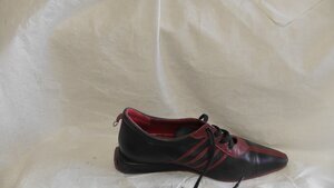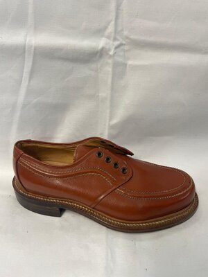 Ein Einzelner Schwarzer Kinder-Halbschuh aus Leder. Der Schuh hat eine Runde Form und einen metallgenagelten Blockabsatz (2 cm). Er verfügt über eine Ösenschnürung, Ziernähte und die Sohle ist metallgenagelt. Der Schuh stammt von einer Missionsstation in Südafrika. Es handelt sich hierbei um ein Einzelstück. Datiert auf um 1900.