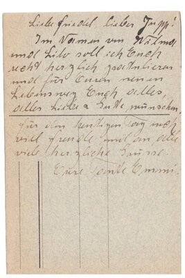 Verschiedene Glückwunschkarten zur Vermählung von Elfriede Savelkouls und Josef Kesseler. Die meisten Karten sind auf stärkerem Papier ohne Bild geschrieben. Der Text besteht zumeist aus den üblichen Glückwünschen, aber auch in der Ankündigung von Geschenken.