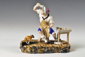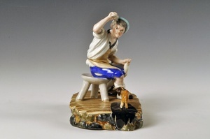 Wütender Schuster Höchster Porzellanmanufaktur um 1770 Bezeichnung unter dem Boden: unterglasurblaue Radmarke