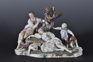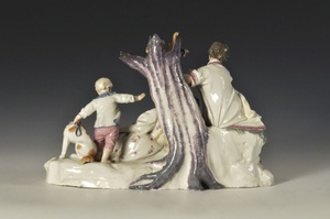 Der Schlummer der Schäferin Höchster Porzellanmanufaktur um 1770 Bezeichnung unter dem Boden: Radmarke in Purpur