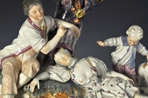 Der Schlummer der Schäferin Höchster Porzellanmanufaktur um 1770 Bezeichnung unter dem Boden: Radmarke in Purpur