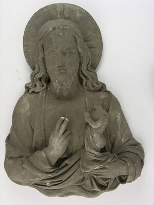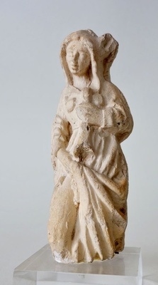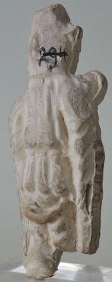 Die männliche Figur ist mit den Attributen eines Narren ausgestattet. Als Kopfbedeckung trägt er eine kapuzenartige Mütze mit Eselsohren. Der Esel stand für das Laster der Trägheit. In der rechten Hand trägt er die sogenannte Marotte, eine auf einem Stab angebrachte Puppe. Weiteres Narrenmerkmal ist die heruntergerutschte Hose, die das nackte Hinterteil erkennen lässt. Nacktheit galt als ein äußeres Zeichen der Abkehr des Menschen von Gott. Fleischlichkeit und Geilheit galten als Laster, das den Narren besonders anhaftet. Um die Nähe zum Laster der Fleischlichkeit abzubilden, wurden Narren gern mit entblößten Körperteilen dargestellt, hier ist es das nackte Hinterteil.
