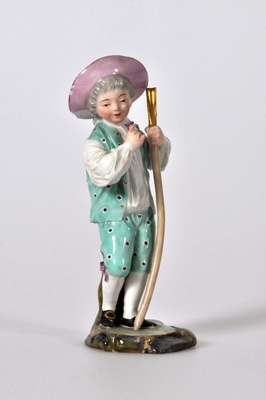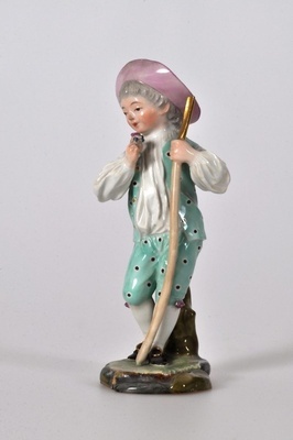 Hirtenknabe Höchster Porzellanmanufaktur 1775-1779 Bezeichnung unter dem Boden: unterglasurblaue Radmarke
