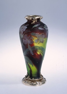 Vase mit Freesien Burgun, Schverer & Co. 1895-1900 Bezeichnung unter dem Boden: VERRERIE D´ART DE LORRAINE B S & Co. depose