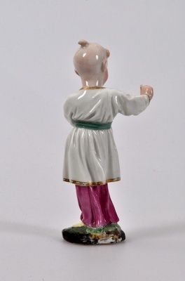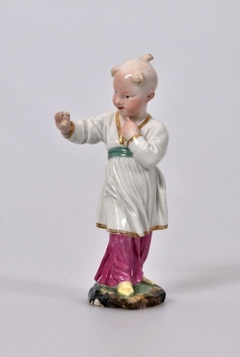 Chinesenknabe mit erhobener rechter Hand Höchster Porzellanmanufaktur um 1770 Bezeichnung unter dem Boden: unterglasurblaue Kurhutmarke