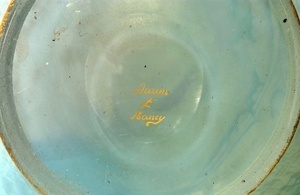 Überfangglas, geschnitten, geätzt (sog. "Eisgrund"); Emaille- und Goldmalerei. Bezeichnung unter dem Boden: Daum Nancy mit Lothringer Kreuz. Auf der Wandung: "à M. Munier souvenir reconnaissant et bien sympathique A.D. 19.Mars 1898"