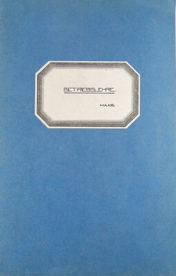 Ein Notizheft auf dessen Cover Betriebslehre geschrieben steht. Entsprechend enthält das Heft auch zahlreiche handschriftliche Notizen zu diesem Thema. Aus welcher Zeit oder welcher Schule dieses Heft stammt, ist nirgendwo vermerkt. Einzig der Name „Haas“ steht noch auf dem Cover. Anhand des Inhalts und des Fundkontextes lässt sich das Heft jedoch etwa in die 1950er einordnen.