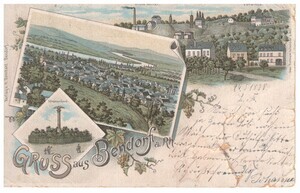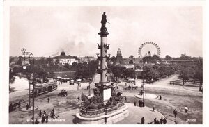 Von einem erhöhten Punkt wurde dieser Platz fotografiert. Im Vordergrund ist der Rücken der Statue von Christoph Kolumbus zu sehen. Sie wird von vier kleineren Säulen eingerahmt wird, zu sehen. Auf diesen Säulen steht je eine Statue mit den Allegorien der Frömmigkeit, Wissenschaft, Beständigkeit und Klugheit. Rechts daneben befindet sich ein großer Grünstreifen. Der Platz wird hinten von mehreren Portalen und Säulengängen begrenzt. In der Mitte steht das größte Portal, flankiert von zwei Säulen. Dies ist ein Eingang zum Hauptbahnhof von Genua (Genova piazza principe). Dahinter ist die Bahnhofshalle mit halbrundem Dach zu sehen. Das Denkmal und die am Rand des Platzes liegenden Gebäude existieren weitgehend auch heute noch, Nicht mehr existent ist das Tor ganz links und die Bahnhofshalle. Das Haus hinter der linken Säulenhalle wurde entweder aufgestockt oder durch ein höheres ersetzt. Im Hintergrund stehen heute sehr viele Hochhäuser. Die Grünflächen um das Denkmal gibt es noch, der gepflasterte Teil des Platzes dient heute dem ruhenden und fließenden Verkehr.