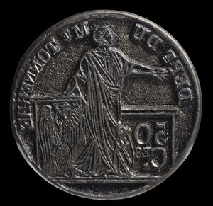Ein Stempel des Départements du Mont-Tonnerre für Gebühren in Höhe von 50 Centimes. Das Stempelbild zeigt eine männliche Gestalt, die mit einer Toga nach Vorbild des Gewandes des freien römischen Bürgers bekleidet ist. Die rechte Hand ist auf einem Sockel mit einem Adler gestützt. Zu den Füßen der Figur lehnt ein Ruder, auf dem ein Dreizack abgebildet ist. Der Adler verweist als Wappentier Frankreichs unter Napoleon auf die Zugehörigkeit des Départements zu Frankreich. Das Ruder verweist wahrscheinlich auf den Rhein als schiffbaren Fluss. Der Rhein markierte die östliche Grenze des Départements. Im Zuge der französischen Revolutionskriege wurden die von den Franzosen annektierten Gebiete in Verwaltungseinheiten nach französischem Vorbild geschaffen. Auf dem linksrheinischen Gebiet des heutigen Bundeslandes Rheinland-Pfalz entstanden das Département du Mont-Tonnerre, das Département de la Sarre und das Département de Rhin-et-Moselle. Der Rückgriff auf antike Motive ist typisch für die Zeit um 1800 und die Stilrichtung des Klassizismus bzw. im Besonderen für den Empire-Stil unter Napoleon. Gerade bei offiziellen Bildwerken bzw. im öffentlichen Bereich genutzten Bildmotiven hatte die Antikenrezeption vor allem auch politischen Charakter. Sie implizierte den Anspruch einer Wiederbelebung des römischen Imperiums durch das Frankreich unter Napoleon. [Johanna Kätzel]