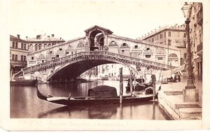Zu sehen ist eine kleine Brücke, welche über einen schmalen Kanal führt. Am den Hauswänden sind Gondeln, welche wohl Waren transportieren, befestigt. Im Hintergrund ist, im Verlaufe des Kanals, eine weitere Brücke zu erkennen. Die Seufzerbrücke führt aus dem ersten Stock eines Gebäudes in das gegenüberliegende. Die Brücke ist mit einem bogenförmigen Dach bedeckt. An der Seite sind zwei Fensteröffnungen mit einer Figur in der Mitte zu sehen. Die Seufzerbrücke verbindet den Dogenpalast mit mit dem neuen Gefängnis verbindet. Sie wurde 1602/03 vollendet und ist elf Meter lang. Über die Brücke führen zwei durch eine Mauer getrennte Wege, die den Blick von abgeführten Gefangenen auf die dem Gericht vorzuführenden verhindert. Die Seufzerbrücke erhielt erst im Zeitalter der Romantik ihren Namen, in der Vorstellung, dass die Gefangenen auf ihrem Weg ins Gefängnis von hier aus zum letzten Mal mit einem Seufzen einen Blick in die Freiheit der Lagune werfen konnten.