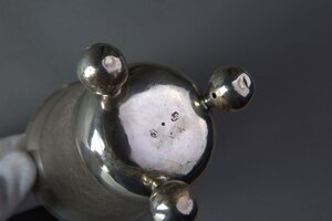 Deckelbecher der Schuhmacherzunft der Stadt Grünstadt. Im Boden des Deckels findet sich die Inschrift "1684 / DIE ERBARE / SCHVMACHR:ZVNFT / IN KRNSTADT HAT. DIE / SEN. BECHER MACHEN / LASSEN IHR ZVGEORNE / TER H IOHAN JACOB STORCK / ZUNFTMEISTER ::: ". Der Becher mit abgerundetem Boden steht auf drei Kugelfüßen. Wandung mit zwei paarweise umlaufenden Riefen, zwischen denen die Grifffläche in Kreuzpunzierung aufgerauht ist. Deckel mit Überfang und dreifach abgestuftem Sockel, auf dem eine gegossene Crispinusfigur steht. Crispinus ist der Schutzheilige der Schuhmacher. [Ludger Tekampe] (Der Becher befindet sich seit dem 3. Mai 2022 als Leihgabe an den Altertumsverein Grünstadt-Leiningerland im Museum im Alten Rathaus Grünstadt.)