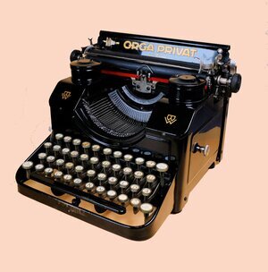 Ab 1922 baute die Fa. Bing auch Schreibmaschinen, zunächst die "Orga Standard" ab 1923 die Orga Privat. Das Unternehmen beschäftigte in dieser Blütezeit rund 16.000 MitarbeitenAlle Modelle zusammengefasst wurde die Orga Privat über fast 30 Jahre produziert. Mit dem Produktionsende 1953 endet auch die Geschichte der Orga Privat. (s. Quellenangabe) Unsere Orga Privat, Modell 4, wurde 1927/1928 hergestellt und trägt die Produktionsnummer 114.734. Auf dem schwarzen, glänzenden Lack prangt in großen, goldfarbenen Buchstaben der Name: ORGA PRIVAT – Bing Werke sowie das Firmen Logo. Die „Volksschreibmaschine, wie sie auch genannt wurde, hat einen harten Anschlag und verfügt über eine reichhaltige Ausstattung. Dazu gehört. Wagenfreilauf, Randsteller rechts, Feststeller für Umschaltung, Rücktaste und staubdicht geschlossene Farbbandspulen. Die Spulen haben einen kleineren Durchmesser, das Farbband eine Breite von 14 mm. Beides sind keine Standardwerte. Die Orga wird von einer schwarzen Blechgaube geschützt, auf der ebenfalls in goldfarbenen Buchstaben der Name „Orga Privat“ steht. Technisch gesehen ist es eine Typenhebelmaschine mit Wagnergetriebe und Wagenumschaltung.