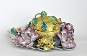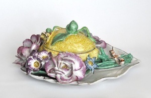 Dose in Form einer Zitrone Höchster Porzellanmanufaktur um 1750 Bezeichnung unter dem Boden: braune Radmarke über Strich