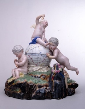 Amor als Weltenbezwinger Höchster Porzellanmanufaktur 1770-1775 Bezeichnung unter dem Boden: unterglasurblaue Radmarke