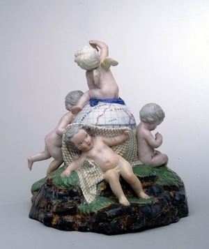 Amor als Weltenbezwinger Höchster Porzellanmanufaktur 1770-1775 Bezeichnung unter dem Boden: unterglasurblaue Radmarke