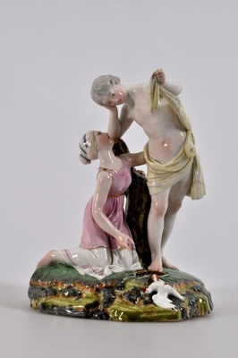 War laut Inventarblatt auf der Jahrtausendausstellung Mainz 1925 ausgestellt. Bezeichnung unter dem Boden: unterglasurblaue Radmarke, Ritzzeichen "N 54 M" "44 HM"
