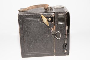 Bis zum 2. Weltkrieg produzierte Zeiss IKON AG (1926 in Dresden gegründet) hochwertige Kameras, Projektoren (Film), Buchungsmaschinen und Filme. Aus dieser Zeit stammt auch unsere Zeiss Ikon Tengor Box 54/2. Hergestellt in Dresden zwischen 1934 bis 1938. Die Box besitzt 2 Sucher, für Hoch bzw. Queraufnahmen. Das Auslösen erfolgt über einen kleinen Hebel oder über einen Drahtauslöser. Eine vorhandene Auslöseverriegelung verhindert eine unbeabsichtigte Belichtung. Die Auslösezeit ist fix auf 1/25s eingestellt. Drei Blendeneinstellungen sind möglich 11 / 18 / 25. Interessant ist die Entfernungseinstellung. Zwischen drei Einstellungen kann gewählt werden, 1,5 m 4 m und unendlich. Je nach Einstellung werden durch das betätigen des Auslösers, die entsprechenden Linsen vor das Objektiv geschoben. Das Objektiv ist ein Görz Fontar mit einer Blende 11 und einer Brennweite von 110mm. Als Film wird ein 120 er Rollfilm verwendet. Das Negativformat beträgt 60 x 90 mm