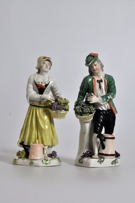 Zusammengehöriges Parr von Winzer und Winzerin. Maße: Winzer, Höhe: 19,3 cm Winzerin, Höhe: 18,7 cm Bezeichnung unter dem Boden: Ritzzeichen "IN", "H"