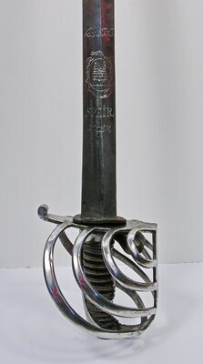 Pallasch mit Griffbügel und durchbrochenem, fächerartigem Korb. Klinge einschneidig mit zwei Hohlkehlen. Beidseitige Gravur auf der Klinge: "K.F.R.STAT SPEIR 1757" (=Kaiserlich Freie Reichstadt). Des weiteren graviert: Stadtwappen von Speyer mit Westbau des Domes in ovaler, von stilisiertem Blattwerk umrahmter Kartusche.