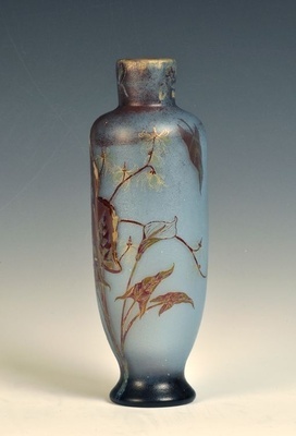 Überfangglas, geätzt, Emaillemalerei, Goldmalerei Bezeichnung unter dem Boden: Vallerysthal (gemalt auf geätztem Blatt)