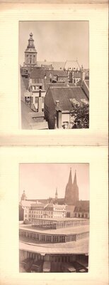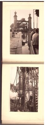 Ein kleines Fotoalbum mit sechsundzwanzig Seiten. Das kleine Album passte in jede Handtasche. Auf diese Weise konnten Freunden Fotos z. B. vom Urlaub oder auch von Familienereignissen gezeigt werden. In unserem Album finden sich Reisefotografien aus Köln und Familienbilder. Bei einigen Fotografien ist ein Schiffshebewerk zu erkennen. Es handelt sich hierbei um das Bauwerk Henrichenburg am Dortmund-Ems-Kanal. Leider ist keines der Bilder beschriftet.
