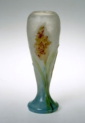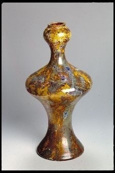 Ringpokal "a la facon de Venice" (Venedig?), aus farblosem Glas, konische Kuppa mit umlaufendem Faden und umlaufend angesetzten Ösen mit Ringen ausblauem Glas, Hohlbalusterschaft in runden Stand übergehend.