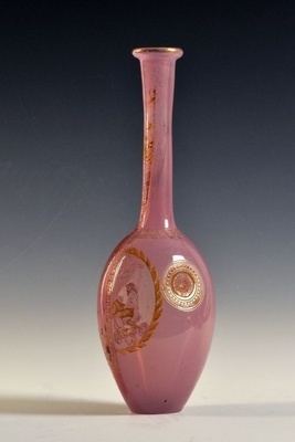 Überfangglas, geätzt (Hochätzung), Emaillemalerei, Goldmalerei Bezeichnung unter dem Boden: Vallerysthal
