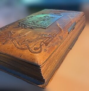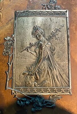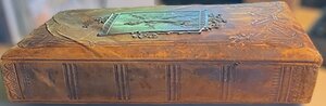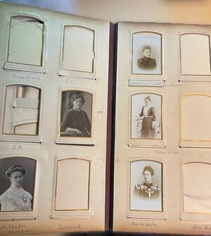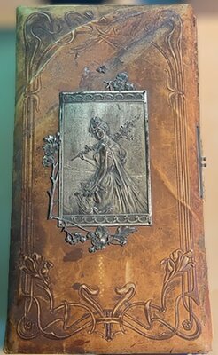 Großes Album bestehend aus sechszehn Seiten stabiler Pappe, welche mit Leder eingebunden sind. In diese Pappe sind Fenster geschnitten, welche teilweise mit Papier überklebt sind. In diese Passepartouts können die Fotos eingeschoben werden. An der rechten Seite befinden sich Überreste eines Verschlusses. Auf der Vorderseite befindet sich ein Beschlag aus Metall, welcher eine Frau mit einem Zweig darstellt. Das Leder der Vorderseite ist aufwändig geprägt.