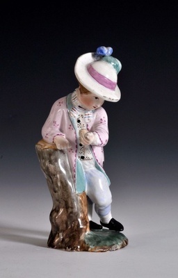 Knabe mit Federhut und Apfel Steingutfabrik Damm 1860-78 Bezeichnung unter dem Boden: ohne Marke