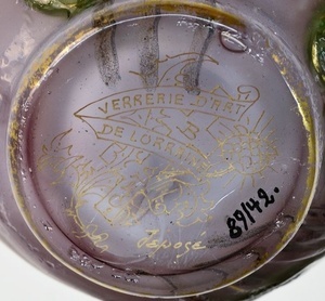 Vase mit Alpenveilchen Burgun, Schverer & Co. 1895-1900 Bezeichnung unter dem Boden: VERRERIE D´ART DE LORRAINE B S & Co. depose