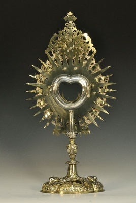 Monstranz, Mainz 1708 Bezeichnung: Beschau: 1708 über Rad im Schild, Meistermarke "IL" im Oval