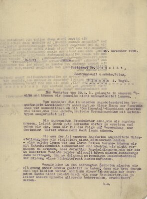 Brief Trierischen Winzerverein an Notar Petzold, Plauen (1926)