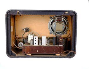 Wobbe war eine kleine Radiofabrik die 1947 in Winsen/Luhe gegründet wurde. Der Umzug nach Rendsburg erfolgte 1949. Bereits 3 Jahre später wurde die Produktion eingestellt und 1953 die Firma aufgelöst. Unser Objekt ist ein Wobbe Radio mit der Typenbezeichnung "Präsident", das 1951/1952 hergestellt wurde. Das Gerät ist mit den Frequenzbereichen LW/2xMW/KW und schon mit UKW ausgestattet, was zu dieser Zeit eher noch ungewöhnlich war. Die Frequenzumschaltung erfogte über einen Drehschalter, der seitlich am Gehäuse angebracht ist. Rechts und links der Sederskala befinden sich zwei weitere große Drehschalter für Ein/Aus, die Klangblende und die Sendereinstellung. Die Komfortausstattung reichte von einem Magischen Auge, das auch bei UKW Empfang voll wirksam ist, bis hin zur indirekt beleuchteten Senderskala. Das hochglanzpolierte Edelholzgehäuse besticht durch seinen einfachen, klaren Aufbau. An externen Anschlüssen verfügt das große Tischgerät über Zweitlautsprecher, Klangblende und Tonabnehmer. Der Preis lag 1951 ungefähr bei ca. 580 DM.