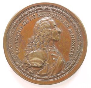 Die Porträtmedaille zeigt auf dem Avers das Porträt des französischen Philosophen und Schriftstellers Voltaire (1694-1778). Auf dem Revers ist ein Altar mit einer Trophäe aus verschiedenen Gegenständen abgebildet, die in Beziehung zu Leben und Werk Voltaires stehen. So sind etwa Theatermasken zu sehen, die auf seine Tätigkeit als Theaterschriftsteller hinweisen. Ein Buch mit der Aufschrift "La Henriade" greift als konkretes Einzelwerk ein episches Gedicht Voltaires aus dem Jahr 1723 zu Ehren des französischen Königs Heinrich IV. heraus. Die Inschrift auf dem Revers spielt darauf an, dass der Medailleur Georg Christian Waechter 1769 eigens für die Anfertigung der Medaille nach Ferney reiste, um das Porträt des Philosophen "nach der Natur" anzufertigen. In seinem Schloss in Ferney verbrachte der berühmte Philosoph seine letzten beiden Lebensjahrzehnte. Die ursprüngliche Medaille trägt auf dem Revers die Inschrift "Il ôte aux nations le bandeau de l'erreur" (Er nahm den Völkern die Augenbinde des Irrtums ab), ein Vers aus der "Henriade", der oft für Voltaire selbst angesichts dessen Bedeutung für die Aufklärung angewendet wurde. Bei seiner Rückkehr nach Mannheim 1770 fertigte Waechter eine zweite Variante der Medaille, der die vorliegende Medaille entspricht. [Johanna Kätzel]