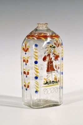 Auf der Vorderseite ist ein ist ein trinkender Kavalier dargestellt, die Rückseite trägt die Inschrift: "Ich liebe / was fein / ob schon / nicht mein".