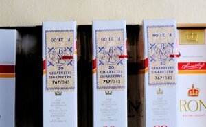 Krone, eine Marke von Simon Arzt (BAT) kam ca. 1963 als neuer Zigarettentyp „Leicht“ auf den Markt. Auf der Packung findet sich der Hinweis "Nikotinarm im Rauch". Der Originalpreis, der Weichboxpackung, lag 1965 bei 1,75 DM für 20 Zigaretten. Einer der damaligen Werbeslogan war „Gehen Sie nie ohne Krone“ oder ""Krone des Geschacks"" Etwa 2018 verschwand die Marke, zusammen mit weiteren namhaften Marken, auf Grund neuer Richtlinien der EU. Unser Objekt ist eine im Original erhalten gebliebene Stange mit 10 Packungen. Sie besitzen keine deutsche, sondern eine französische Steuerbanderole. Hergestellt wurde sie nach 1970, da ab diesem Zeitpunkt die Marke mit einem neuen, modernerem Lay out erschien.