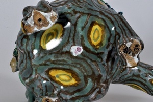 Die Kanne in Form eines knorrigen Eichenastes ist reich mit Applikationen verziert, es sind Zweige, Eichenblätter und Eicheln. Die Gefäßform mit abstehenden Handgriff im rechten Winkel zum Ausgießer ist spezifisch für Schokoladenkannen, diese Kostruktion erlaubte, das heiße Getränk mit einer Drehbewegung des Griffes auszugießen. Ungewöhnlich bleibt die reiche Gestaltung durch Naturelemente, die weder in der Keramik noch in der Metallkunst Europas Vorbilder hat. Diese Kanne, wie auch ihre Vergleichsstücke, zeigen keine Gebrauchsspuren. Deshalb bleibt es offen, ob diese Kannen nur zu dekorativen Zwecken oder auch zur praktischen Verwendung bestimmt waren. Wahrscheinlich standen solche Kannen als Schauobjekte auf Tafeln oder Kredenzen bei Jagdgesellschaften oder in Ermitagen. Bezeichnung unter dem Boden: purpurne Radmarke, Signatur "W"