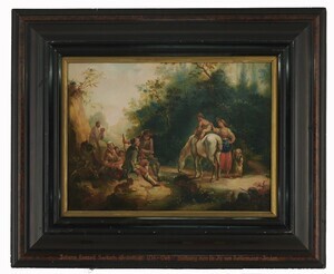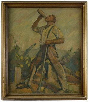 Porträt des Dichters, der auf einem rot gepolsterten Sessel sitzt und von der Lektüre aufschaut. Signatur des Malers "Joseph Schäfer München", Bildmitte, am linken Rand. undatiert. Friedrich Hermann Frey war der Sohn des Regierungsdirektors Max Frey (vormals Kabinettsrat des Königs Otto von Griechenland) und dessen Gattin Adelheid Friederike Ehrmann, Tochter des Speyerer Kreismedizinalrates Christian Ehrmann (genannt Stellwag), dem Adoptivsohn des Mediziners und Goethefreundes Johann Christian Ehrmann. Ein Onkel Martin Greifs mütterlicherseits war der Speyerer Kreisarchivar und Maler Peter Gayer (1793–1836). Die Familie übersiedelte nach Speyer. Greif wurde 1859 Offizier, nahm aber 1867, um ganz seiner Neigung zur schönen Literatur folgen zu können, seinen Abschied und ließ sich als freier Schriftsteller in München nieder, von wo aus er Reisen nach England, in die Niederlande, nach Spanien, Dänemark, Italien und in andere Länder unternahm. Bereits 1862 hatte er den Dichter Friedrich Rückert in Neuses besucht. Durch Vermittlung Eduard Mörikes erschien 1868 bei Cotta das Buch Gedichte unter dem Pseudonym Martin Greif, das er seit 1882 auch als bürgerlichen Namen führen durfte. 1869 zog er nach Wien, wo durch Vermittlung Heinrich Laubes viele seiner Stücke mit Erfolg am Burgtheater aufgeführt wurden. Nach Laubes Weggang vom Burgtheater ging Greif nach München zurück und schrieb vaterländische Stücke für das bayerische Hof- und Nationaltheater. Nach langem Leiden starb Greif im Alter von 71 Jahren im Krankenhaus in Kufstein. siehe Wikipedia-Artikel. Der Porträtist Schäfer war ein in München tätiger Bildnis- und Freskenmaler, Schüler von Andreas Müller, Prof. an der Bauschule München. L.Tekampe