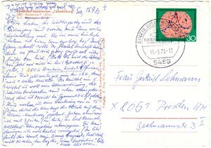 Luftaufnahme aus südöstlicher Richtung aufgenommen. Im Vordergrund Sanatorium Spitznagel und links daneben die heutige Ahrtal Klinik in Bad Bodendorf. Im Hintergrund am aufsteigenden Hang links Weinberge und im Anschluß nach rechts sind noch Weinbergmauern der aufgegebenen Weinberge zu erkennen. Die Ansichtskarte einen gewellten Rand. Rückseitig ist die Karte eng beschrieben und wurde nach Dresden verschickt. Frankiert ist sie mit einer 30 Pfennig Marke mit Motiv zu 100 Jahre Internationale Meteologischen Zusammenarbeit.