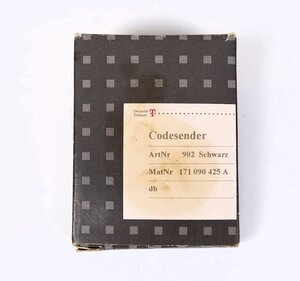 Unser Objekt ist ein Codesender. Er stammt aus der Zeit, als es noch kein D Netz für Handys gab und Autotelefone unerschwinglich teuer waren. Damit wichtige Telefonate schnell den Empfänger erreichen konnten, gab es den Anrufbeantworter mit Fernabfrage. Das war besonders Interessant für Geschätsleute, die ständig Unterwegs waren. Sie konnten mittels diesem Codesender, von jedemTelefon aus, den eigenen Anschluss anrufen und die eingegangenen Sprachnachrichten abhören. Das funktionierte allerdings erst mit Einführung des des MVW (Mehr-Frequenz-Wahlverfahrens), in den 1980er Jahren. Die Originalverpackung von unserem Objekt ist genauso erhalten geblieben, wie die Gebrauchsanweisung, die der Verpackung beiliegt.