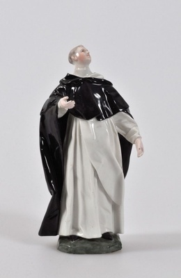 Dominikanermönch Höchster Porzellanmanufaktur um 1760, Ausformung 1765-1770 Bezeichnung unter dem Sockel: unterglasurblaue Radmarke, Ritzzeichen "No 231", "54", MC"