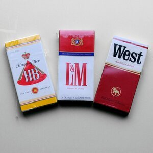 Mit Genehmigung des Finanzministeriums durften sogenannte Probierpackungen mit 3 Zigaretten Inhalt, ohne Steuerbanderole verschenkt werden. Jede Packung musste aber mit dem Hinweis "Unentgeltliche Werbeprobe" gekennzeichznet sein. Die Endverbrauchersteuer wurde von den Zigarettenfabriken getragen. Von dieser Werbe-Möglichkeit machten alle namhaften Hersteller Gebrauch. Unsere 3er Packungen stamen von verschiedenen Herstellern wie Reemtsma (West), L&M (BAT) und HB (BAT) Manchmal erhielt die Werbepackung auf der Rückseite ein Bild, das mit der aktuell laufenden Werbekampagne korresponierte.