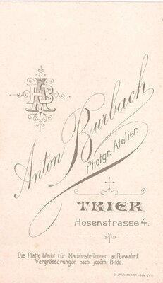 Zu sehen ist ein Soldat, der sich im Atelier in Pose gestellt hat. Seine Mütze liegt euf einem kleinen Tischchen, die rechte Hand umfasst den Gürtel. Auf dem rechten Arm ist das Kaiserabzeichen zu erkennen. Dieses Abzeichen wurde 1895 durch Kaiser Wilhelm II. als jährliches Preisschießen gestiftet, um die Schießleistungen zu verbessern. Das Abzeichen wurde zwischen 1895 und 1913 verliehen. Das Bild wurde auf ein Stück Pappe geklebt. Unter dem Foto und auf der Rückseite befindet sich Werbung des Fotoateliers.