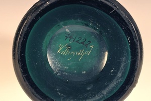 Überfangglas, geätzt (Hochätzung), Emaillemalerei, Goldmalerei Bezeichnung unter dem Boden: Vallerysthal