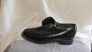 Ein Einzelner Schwarzer Herren-Halbschuh aus Leder. Runde Form, Schuhgröße 42. Der Schuh hat einen Absatz von 3,5 cm und einen Plateau von 2 cm. Er verfügt über einen Riemen über dem Schuhblatt mit Klettverschluss und silberner Schnalle mit der Aufschrift der Marke "Memphis" und zudem noch über Ziernähte.