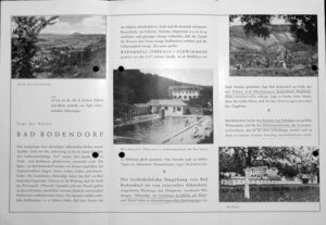 Sechsseitigen Prospekt Dier Vorderseite ziert ein von händengetragener Schale mit sprudelndem Brunnen. Auf den folgenden Seiten erfolgt die Vorstellung des Ortes und die Wegbeschreibung. Der Flyer war für eine Schutzgebühr von 5 Rpf. zu kaufen.