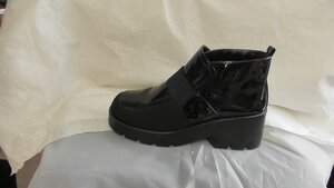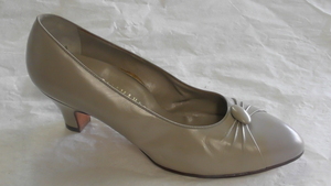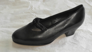 Ein Einzelner Blauer Slingpumps aus Kunstleder. Der Schuh hat eine Runde Form und einen Keilabsatz (4 cm). Er verfügt über einen Riemen ohne Schnalle und auf dem Schuh befinden sich Übergänge aus Reptilien-Leder-Optik und Kunstleder. Hergestellt für die Marke "HJ WROBL".