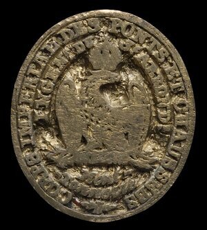 Der Siegelstempel hat einen hölzernen Griff mit Knauf und eine ovale Stempelplatte mit dem napoleonischen Adler, der ein Blitzbündel in seinen Fängen hält. Laut Inschrift handelt es sich um das Siegel der Kaiserlichen Brücken- und Straßenbauingenieure im 3. Arrondissement (des Départements) von Mont-Tonnerre. In der Folge der französischen Revolutionskriege und der Annektierung exterritorialer Gebiete durch die Franzosen, wurden die dort vorherrschenden Verwaltungsstrukturen zerschlagen. Die Gliederung erfolgte nach französischem Vorbild mit Mairie, Kanton, Arrondissement (Unterpräfektur) und Département. Das Département du Mont-Tonnerre war in vier Arrondissements aufgeteilt: Mayence (Mainz), Kayserslautern (Kaiserslautern), Spire (Speyer) und Deux Ponts (Zweibrücken). Neben den geografischen Verwaltungseinheiten wurde auch der Beamtenapparat aus Frankreich übernommen. Für den Brücken- und Straßenbau war eine Gruppe höherer Beamter zuständig, die seit 1716 in dem von Ludwig XV. eingeführten "Corps des ingénieurs des ponts et chaussées" zusammengefasst waren. Viele dieser angesehenen Ingenieure wurden ab 1794 in der renommierten École polytechnique ausgebildet. Der Zusatz "imperial" auf dem Siegel lässt dieses in die Zeit des Französischen Kaiserreiches unter Napoleon I. datieren. [Johanna Kätzel]