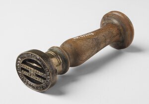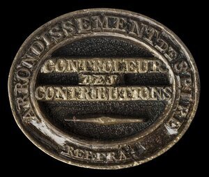 Der Siegelstempel besteht aus einem Holzgriff mit Knauf und einer querovalen Stempelplatte aus Bronze. Es handelt sich um das Siegel eines Steuerkontrolleurs des Arrondissements Speyer (im Département du Mont-Tonnerre), das in napoleonische Zeit und zwar wohl zwischen1804 und 1814 zu datieren ist. Nach den Wirren der Französischen Revolution entstand unter Napoleon ein neues und einheitliches, auf den Prinzipien der Gleichheit und Gerechtigkeit beruhendes Steuersystem mit einer effizient durchorganisierten und hierarchisierten Verwaltungsstruktur. Ein Dekret vom 5. Germinal des Jahres XII (26. März 1804) regelte die Verwaltung der Steuern in den Départements: An der Spitze jedes Départements stand ein Direktor. Dieser beaufsichtigte Inspektoren, "Controleurs", "Einnehmer", "Commis zu Pferde und zu Fuß" sowie "Declarationsvorsteher". Während Direktoren und Inspektoren eine allgemeine Aufsicht ausübten, hatten die Kontrolleure eine Spezialaufsicht über Einnehmer und sonstige Unterbeamte. [Johanna Kätzel]